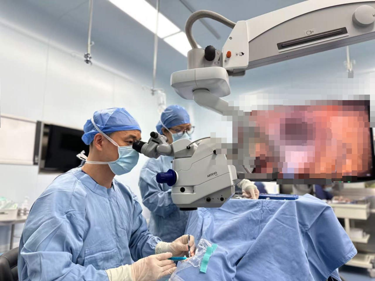 韩伟教授正在进行ICL晶体植入手术。受访者供图